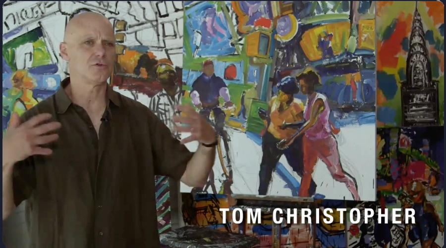Tom Christopher’s studio is upstairs. The showroom is open by appointment. The paintings he made during the Brill Building Project are part of a larger body of work available to see in person.